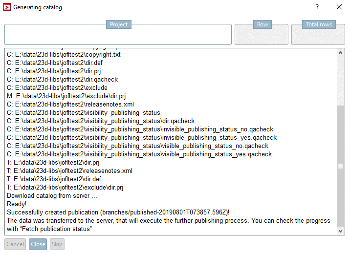 The data was transferred to the server, that will execute the further publishing process. You can check the progress with “Fetch publication status”