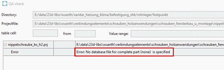 The entry of at least one 3D model is mandatory! If no 3d file is set, in TestMeta, in the dialog box QA-Check, a respective error message is displayed.