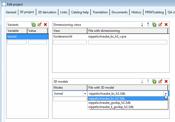 Optionally, you can use the dialog area Variants, if you want to assign certain 3D models to different variable values (table rows). | |