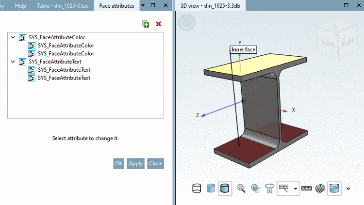 Once selecting any face with already assigned attributes anew, they are displayed in the docking window Face attributes. | |
