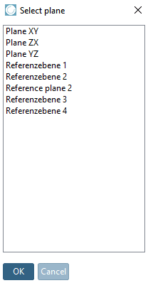 After click on Select plane the same-named dialog is opened.