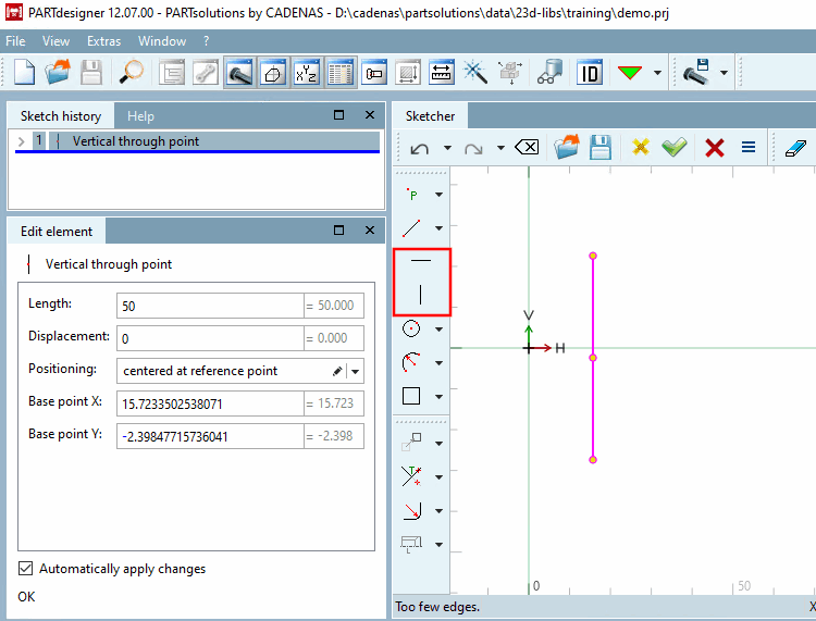 1.5.1.3.2.6. Sketcher: Variable positioning with "Horizontal by point " or "Vertical by point "