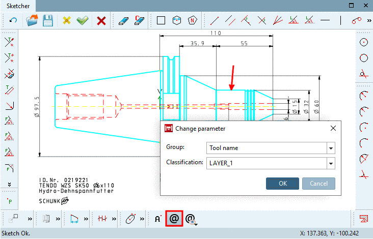 -> The respective dialog box for specification of Group and Classification is opened. Select desired options (here Tool name and LAYER_1.