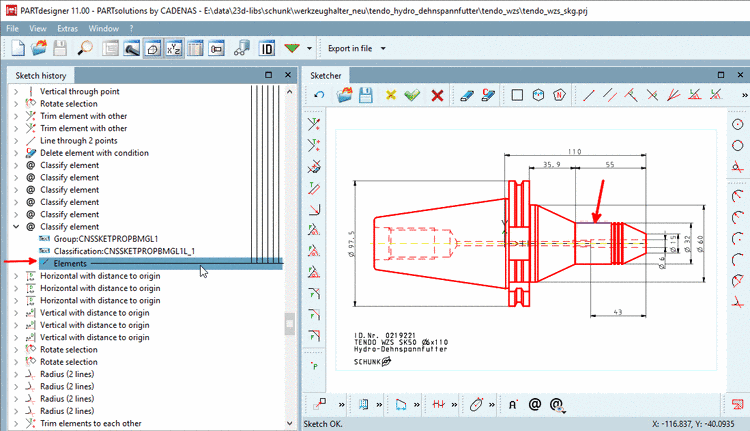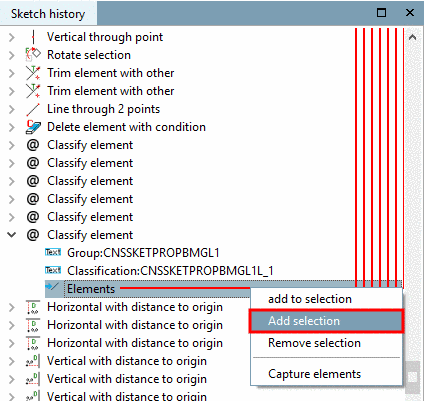 -> In the Sketch history, the relation between shape element and classification is represented by a red arrow.