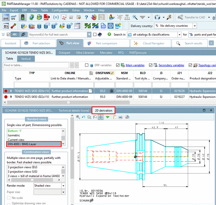 Drawings can be enhanced with BMG layers according to DIN 4003. When exporting 2D DXF/DWG these layers transfer important information for Tooling and BIM, among others.