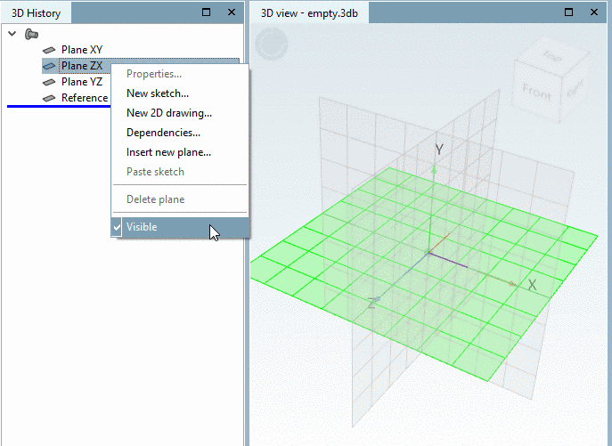 Makes the currently selected plane permanently visible, even when another one is selected. If you want to remove the plane, you must deactivate this command (remove checkmark).