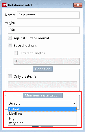 In some rare situations we have the problem that we need to increase the accuracy for rasterization within the part to enable the creation of certain geometry. Therefore you can find this option for Base, Cut and Sweep.