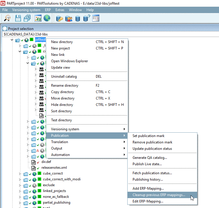 ERP mappings which are not required anymore they can be removed from the current work status by using the command Cleanup previous ERP mappings... (storing in mapping.json).