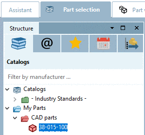 Parts inserted via CAD interface with Own parts library function