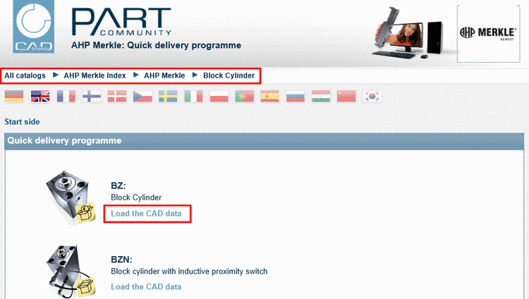 Click through to the desired part. At bottom level you can see the link Load the CAD data.