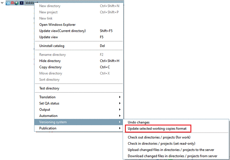 If necessary, the command is displayed after a TortoiseSVN update. Compatibility with V11 is given after execution.