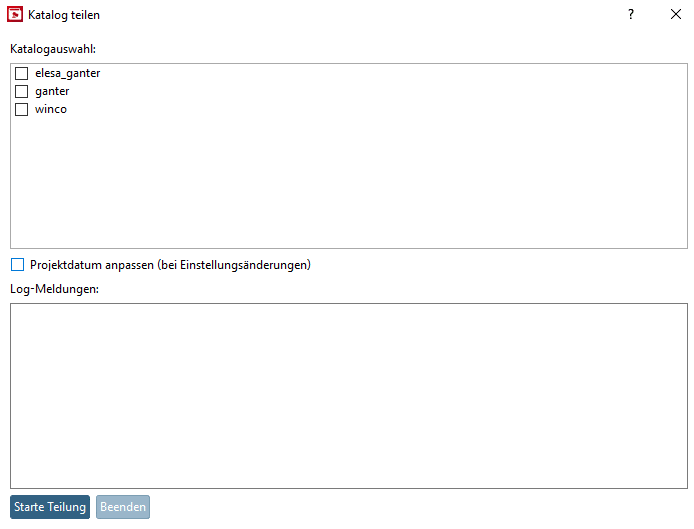 Once selecting a project on the left, settings of the chosen subcatalog (depending on selected tab) are displayed on the right, which are executed during the separation process.