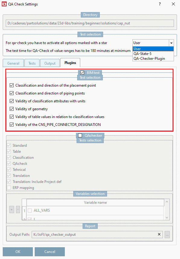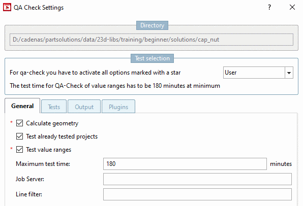 On the tabbed page General following points have to be set, the rest may remain disabled for a pure BIM Check.