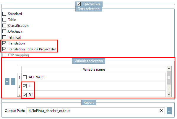 When using the QAchecker certain aspects such as table, classification, translation, for example, can be checked.