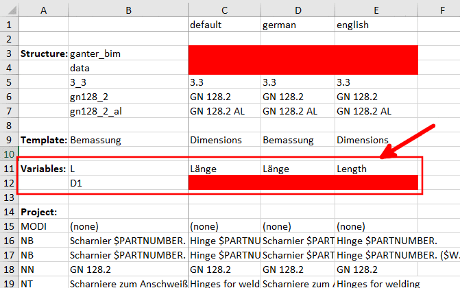 Primarily interesting are Project path, Text and Group, where appropriate also Value range.