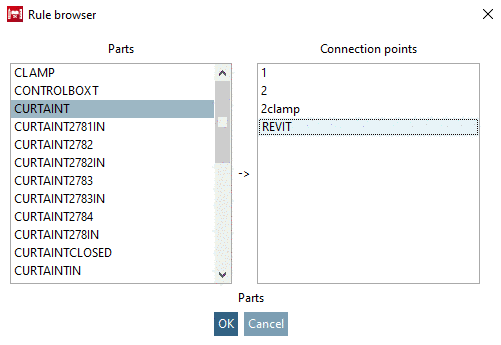 In the Rule browser, determine the connection point.