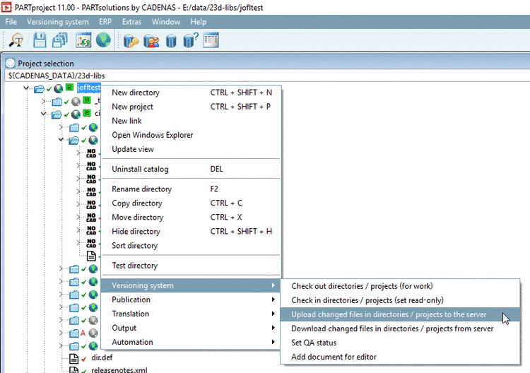 Upload changed files in directories / projects to the server: In the course of uploading files the necessity of mapping (or updating the table version with the mapping) is checked.