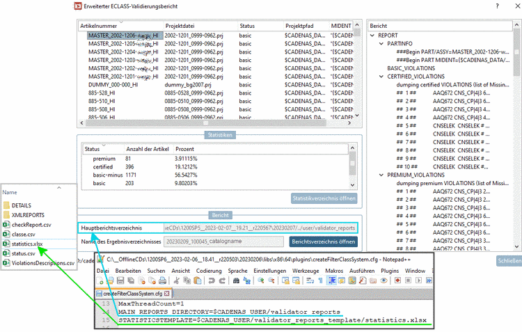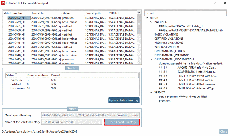 statistics.xlsx. When clicking on it is already selected.You can open the current report directory directly from the dialog Extended ECLASS validation report.
