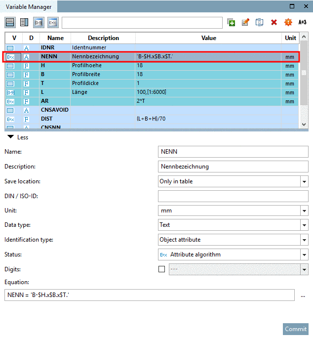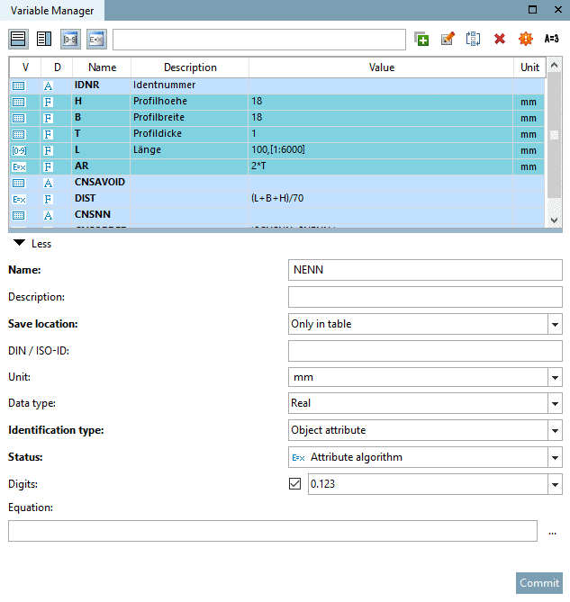 --> The variable name entered under Name is entered into the field as first part of the expression of the attribute algorithm.