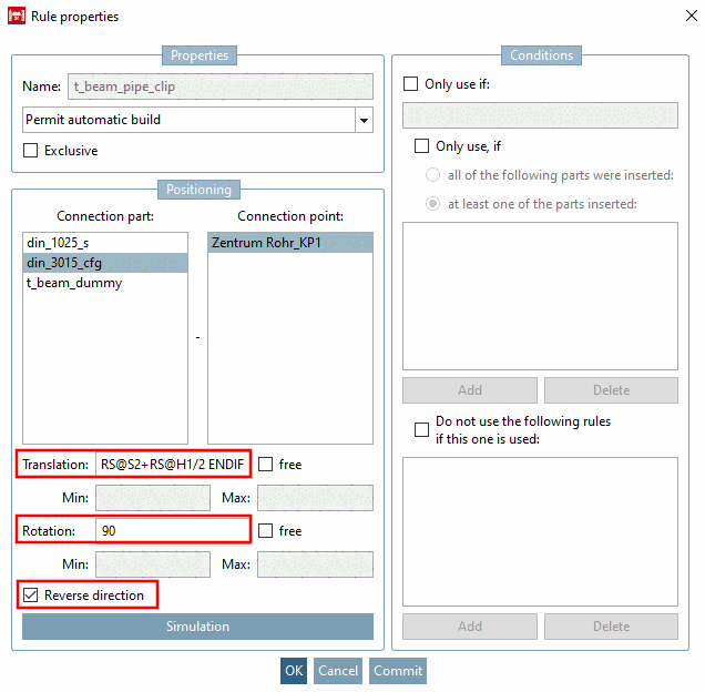 Again open the dialog Rule properties of the connection point "Rohrschelle".