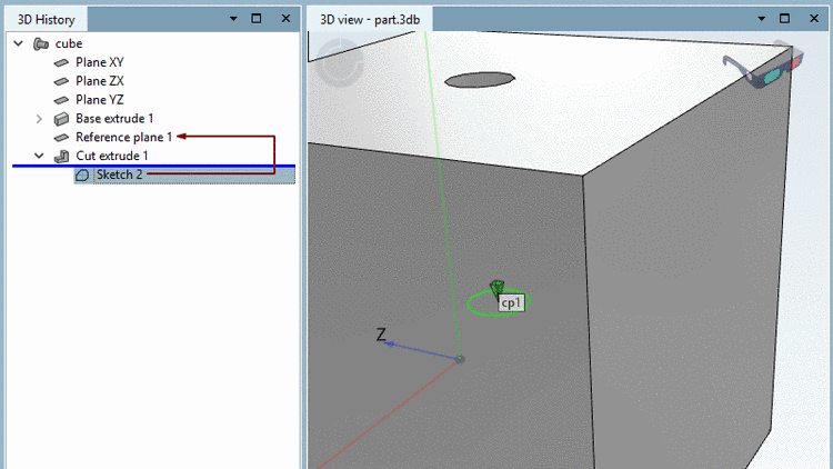 If rotation is required in another plane, please use respective reference planes, in order to place the connection point.