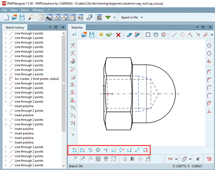 With the help of the tools in the Dimensioning toolbar the *.3db object can be dimensioned in the Sketcher.