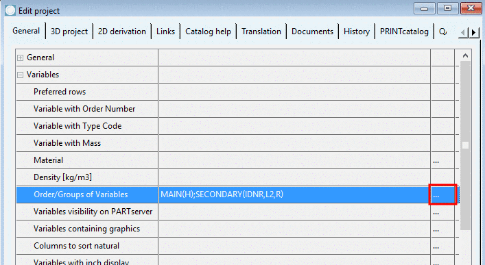In PARTproject, under Edit project -> tabbed page General -> section Variables -> Order/Groups of Variables, click on the browse button .