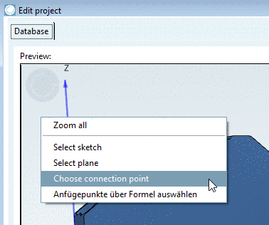 Under Edit project -> Preview, click on the context menu command Choose connection point.