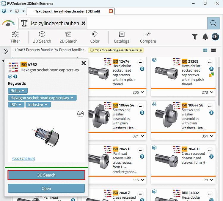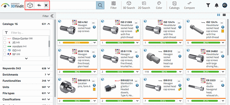 Further information on the 3D search [3D Search] can be found under Section 5.5.2, “ 3D Shape Search ” in ENTERPRISE 3Dfindit.
