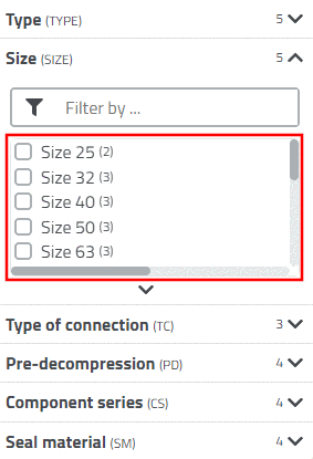 The weighting of the number of hits is secondarily in compare to the natural sort order, so that "Size 25" is displayed at the first position, although the number of hits is only 2 and that of the following is 3.