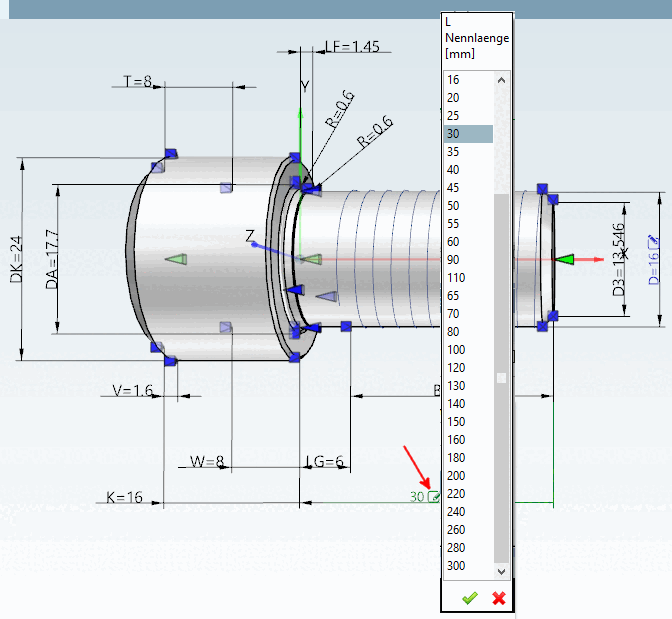 you can adjust the characteristic directly in the 3D view. Relevant dimensions can be assigned more quickly in the context of the 3D view [3D view] than in the table.