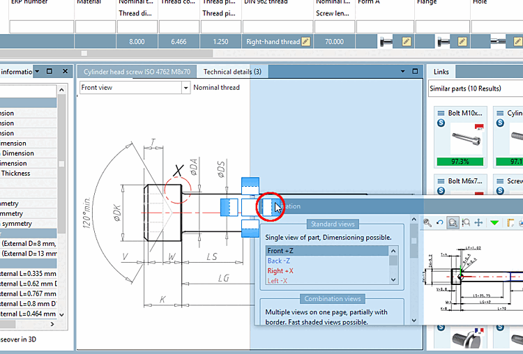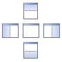 Example 2: The cursor is over the right cross area. -> The right side of the target docking area is marked with transparent blue. When releasing the mouse key the docking window to be positioned is placed in a new docking area on the right side of the marked one.
