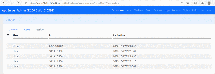 To check users, sessions and licenses, open AppServer Admin