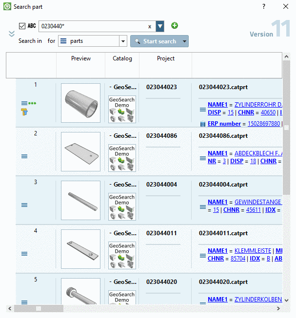 When clicking on the button, the dialog Search part is opened.