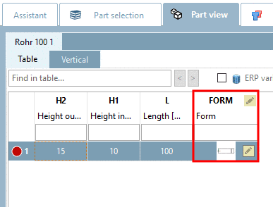 and choose the desired form.In a table column, you can optionally display graphics instead of text in PARTdataManager.
