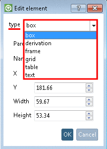 listing of all selectable types. When opening an already existing element,