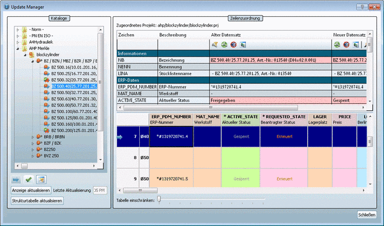 7. Now the PARTlinkManager shows a small, but realistic initial situation. With the help of this data the functions of the Update manager are explained.