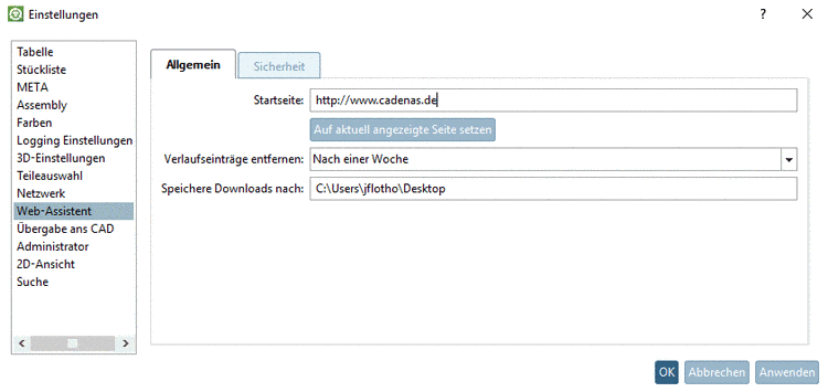 Security tabbed page