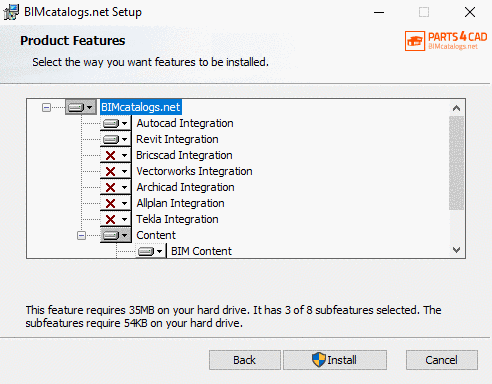 Select the desired features and then click .