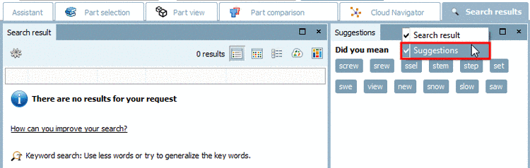 window Suggestions, in the dialog area Did you mean, terms similar to the one entered