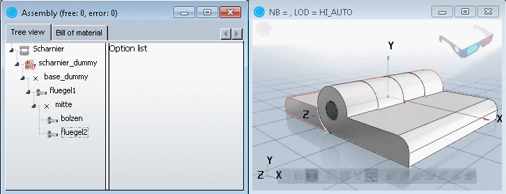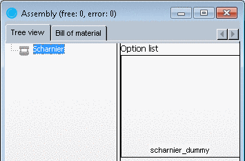 Afterwards, in the Assembly dialog area in the Tree view only the Description will be displayed while the Option list remains empty. |