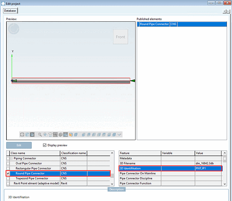 Set the corresponding variable for the characteristic Pipe Connector Nominal Diameter (outside diameter) (DN in this example)