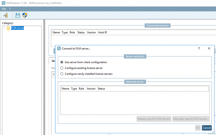 -> The dialog box Connect to FLM server... is opened.