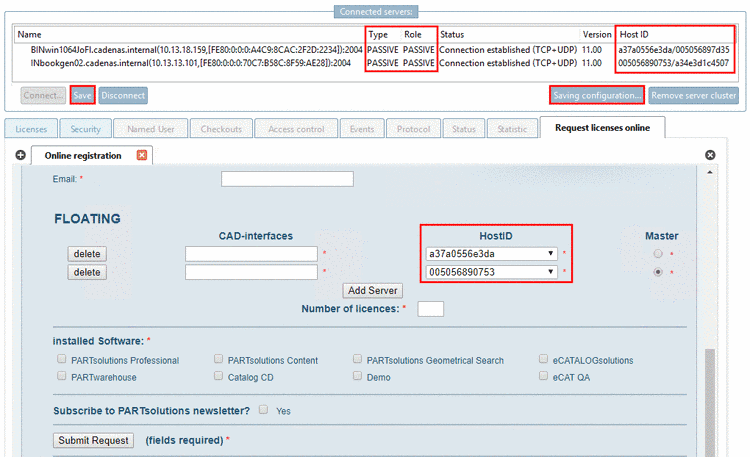 -> The HostID of each server is already entered in the form. Also see Section 1.4.4.12, “ Tabbed page "Request licenses online"” in PARTsolutions - Administration Manual.