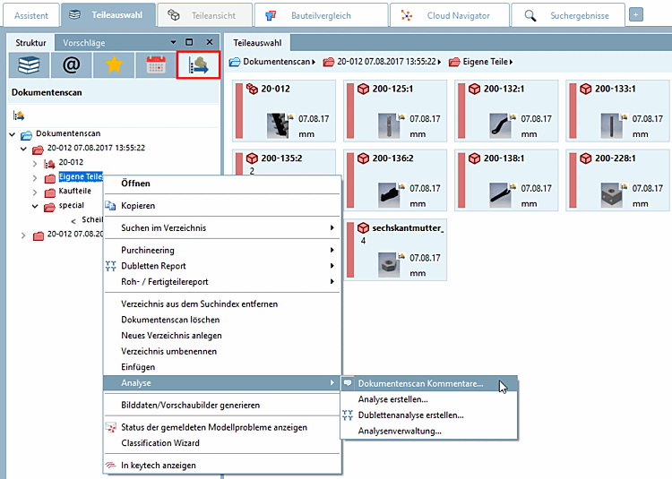 In the context menu of each directory and project, you will find the command Document scan comments [Document scan comments...] under Analysis.... [Document scan comments...] This allows you to communicate across departments.[117]