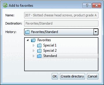 "Add to favorites [Add to favorites] " for example under "Catalogues [Catalogs] " or "Symbols [Symbols] "