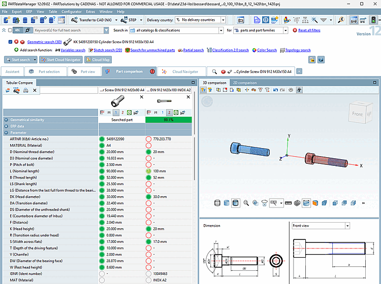The similarity comparison is primarily carried out on a geometric basis. An interesting feature is the additional textual search for references to standard parts.