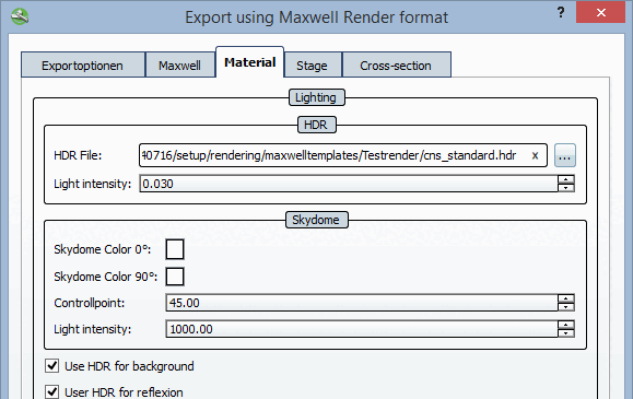 If Maxwell Render is selected under Format, the Export in Maxwell Render format dialog page opens after confirming the settings with .
