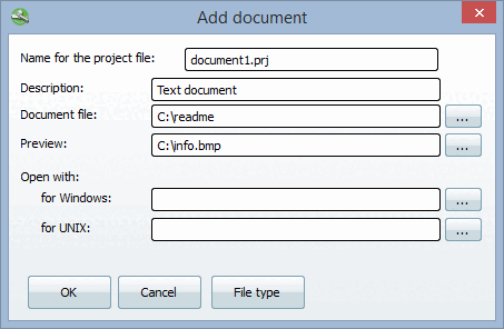 In document projects, you can attach additional information (e.g. dimension sheets) to a project. Common file formats in this context are *.html, *.pdf and *.doc.