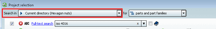 The command is only available at project level. The selected part is displayed in the Partial search dialog box.